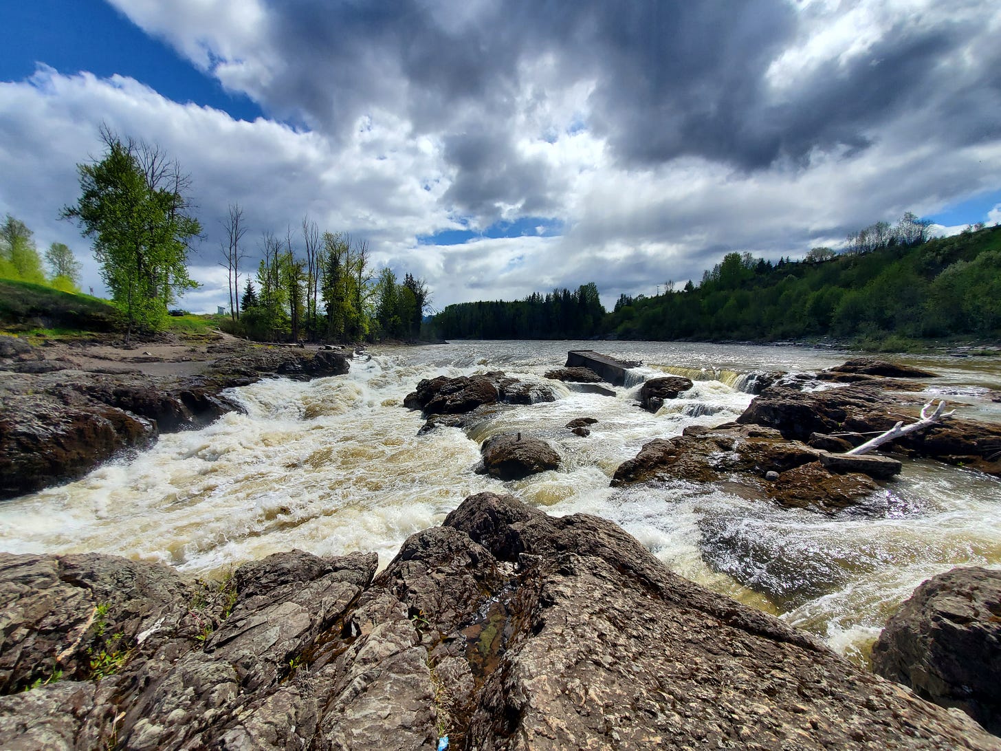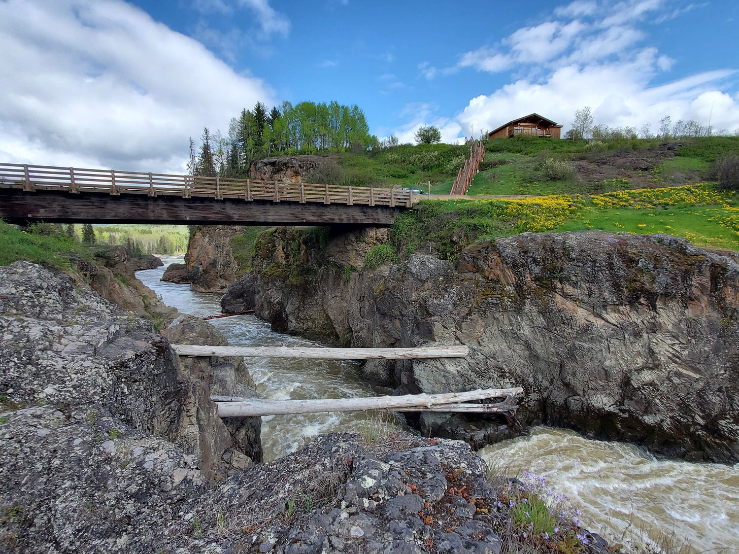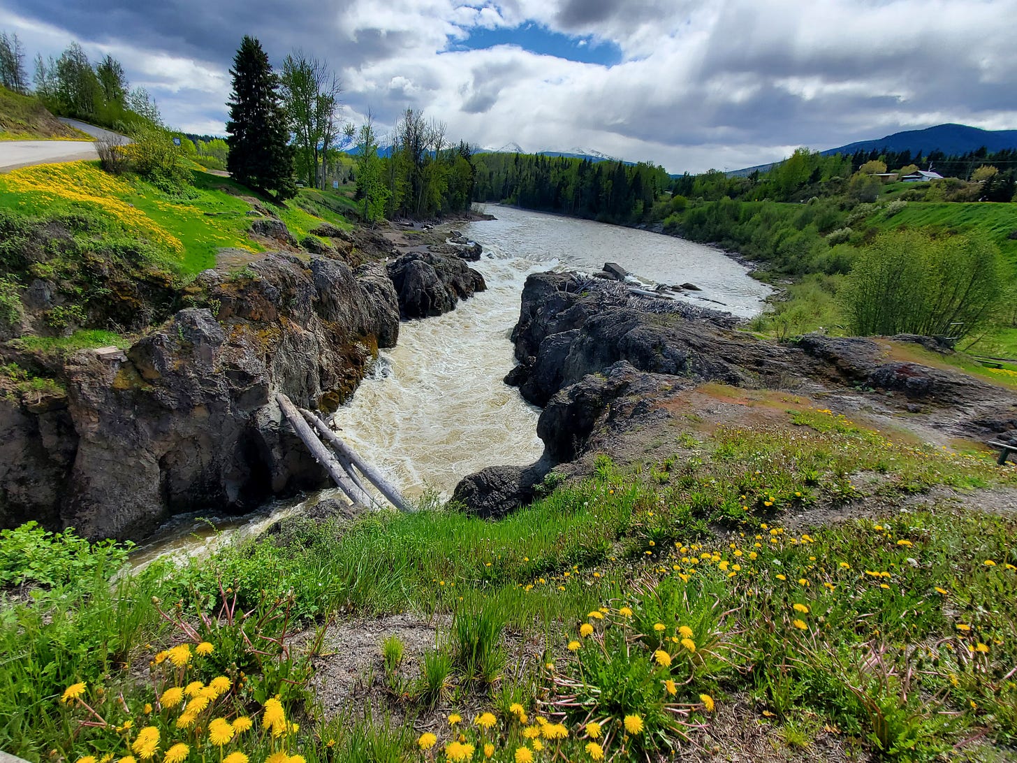 この渓谷がある地域は、ファーストネーション(先住民)の方々が住む地域で、秋になると、伝統的な方法でサーモンを獲るそうで、その様子が見られるようです。ぜひ一度見てみたいです。