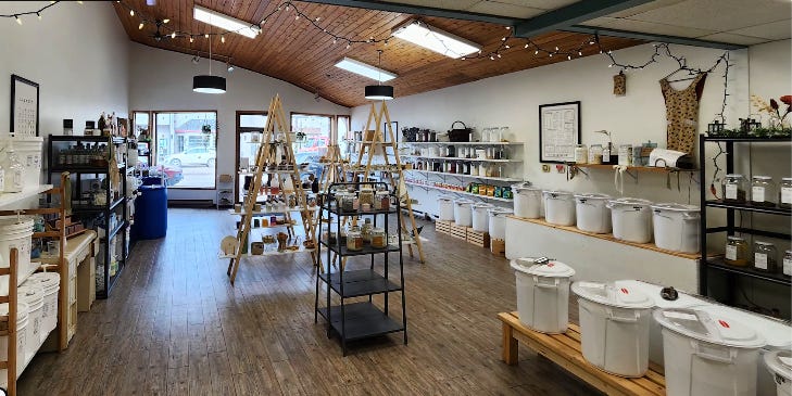 私が住んでいる町には、無駄ゼロを目指すお店があります。欲しいものを、欲しい分だけ買うことが出来るお店です。例えば、大豆を500gだけとか、米粉を200gだけとか、シャンプーをこれだけ・・・という風に。基本的には、自分で容器を持参します。なので、このお店の名前は、その名もRe-Jar。Reは「繰り返し」「再」の意味。jarは「瓶」なので、容器を繰り返し使うという意味。実際のお店⬇️